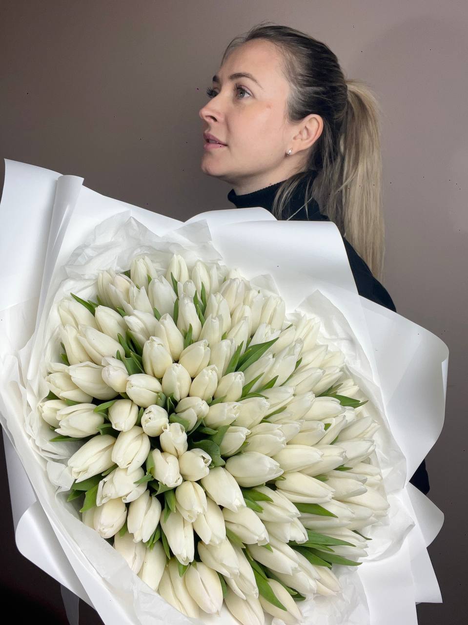 Двадцать пять тюльпанов Icecream с махровыми лепестками цвета клубничного крема. Бутоны раскрываются постепенно и держат форму несколько дней подряд. Букет собран плотно и удобно помещается в любую вазу.