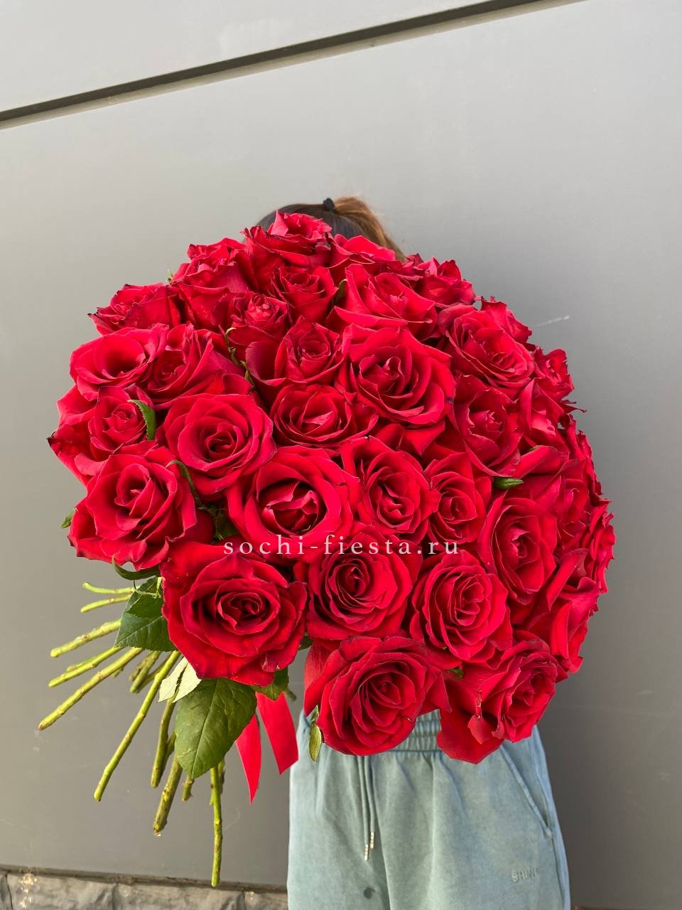 35 красных роз под ленту