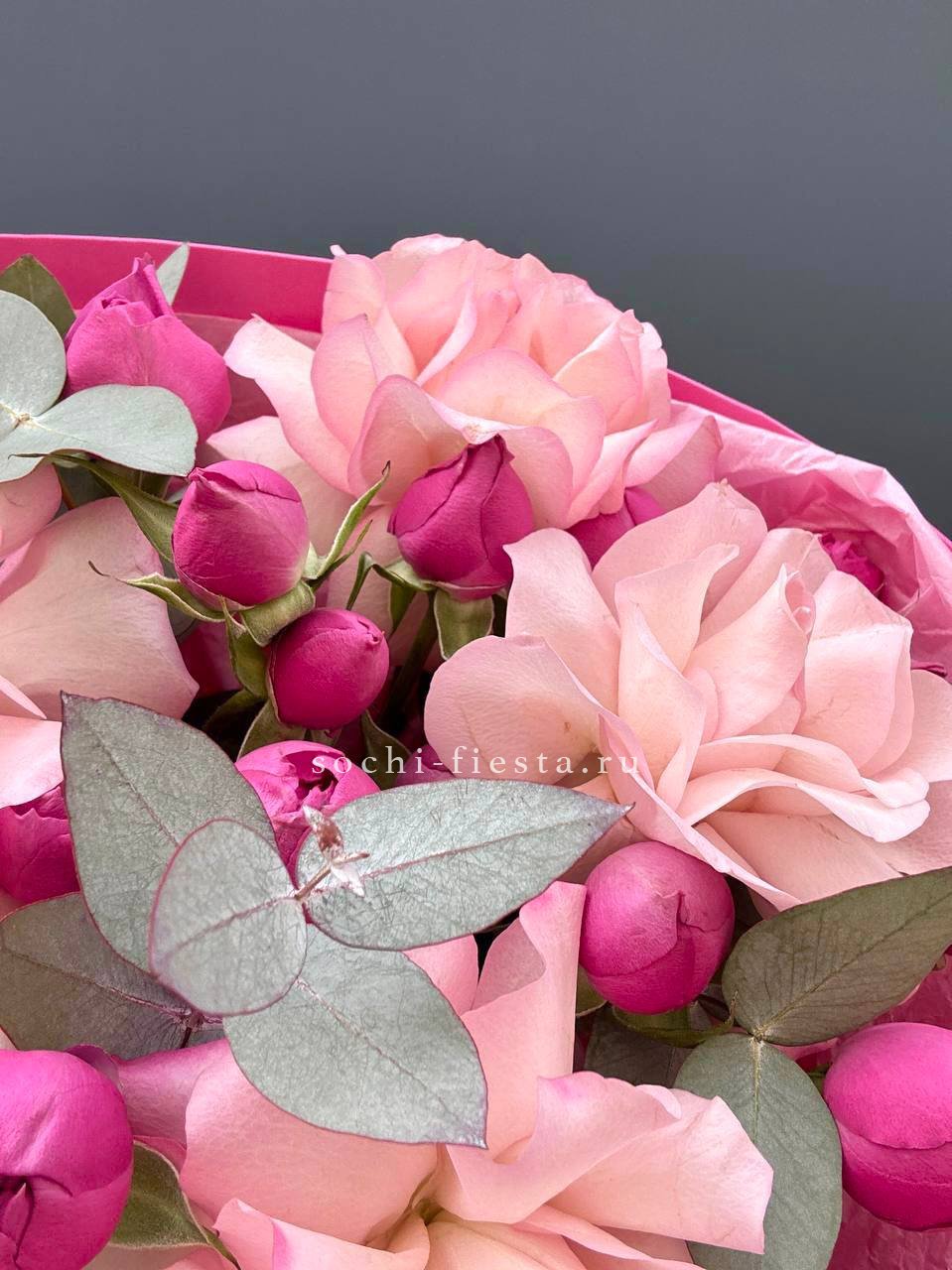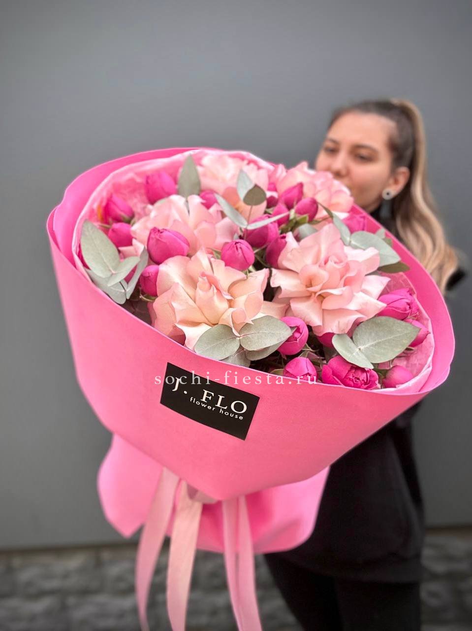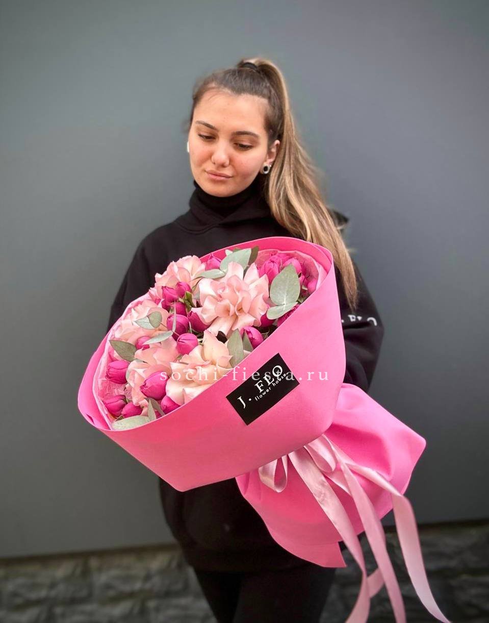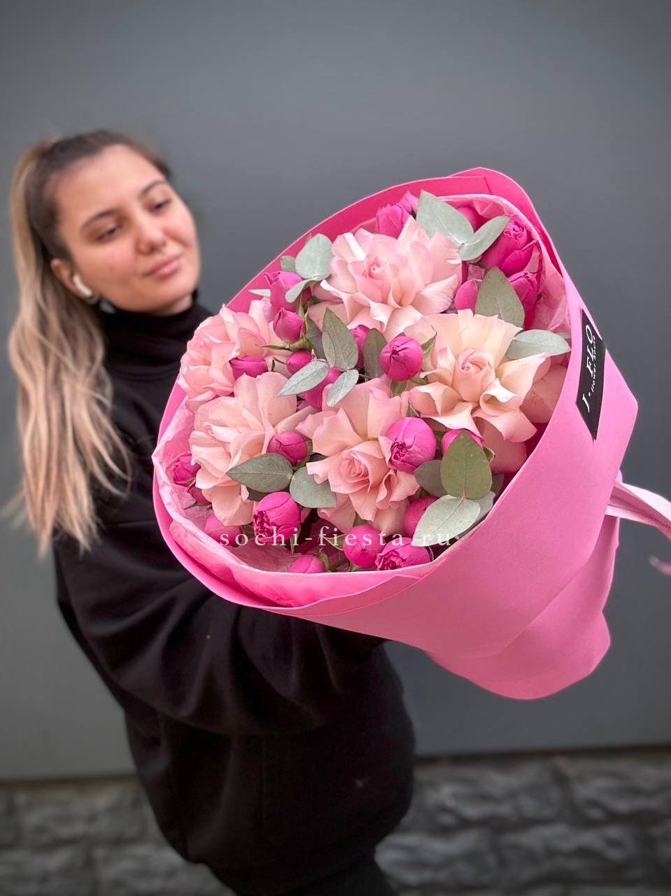 Для заказа товара "Букет французских и пионовидных роз "Ламиносо"" с доставкой в Нижнекамске нажмите в корзину
