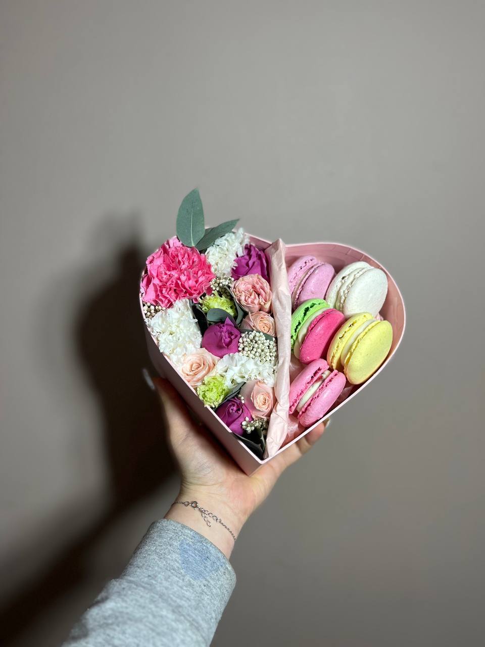 Для заказа товара "Дуо цветы и макаронсы" с доставкой в Нижнекамске нажмите в корзину