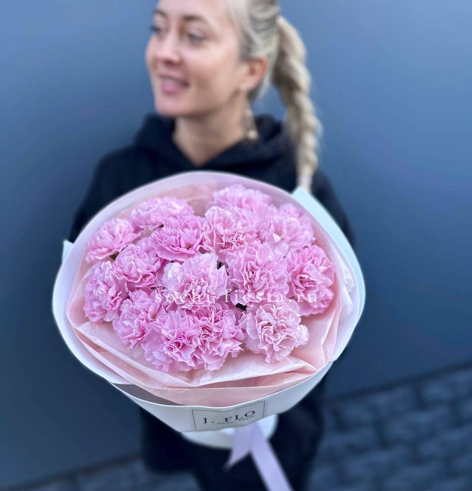 диантус - 21 шт., лента, крафт или дизайнерская пленка.