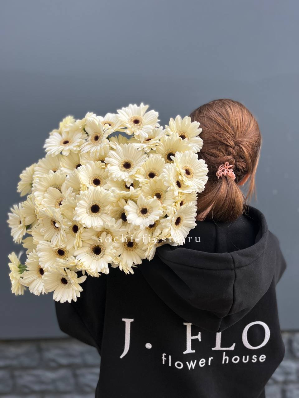 голландская гербера 7 шт., лента, дизайнерская упаковка Оттенок гербер может быть согласован с заказчиком.