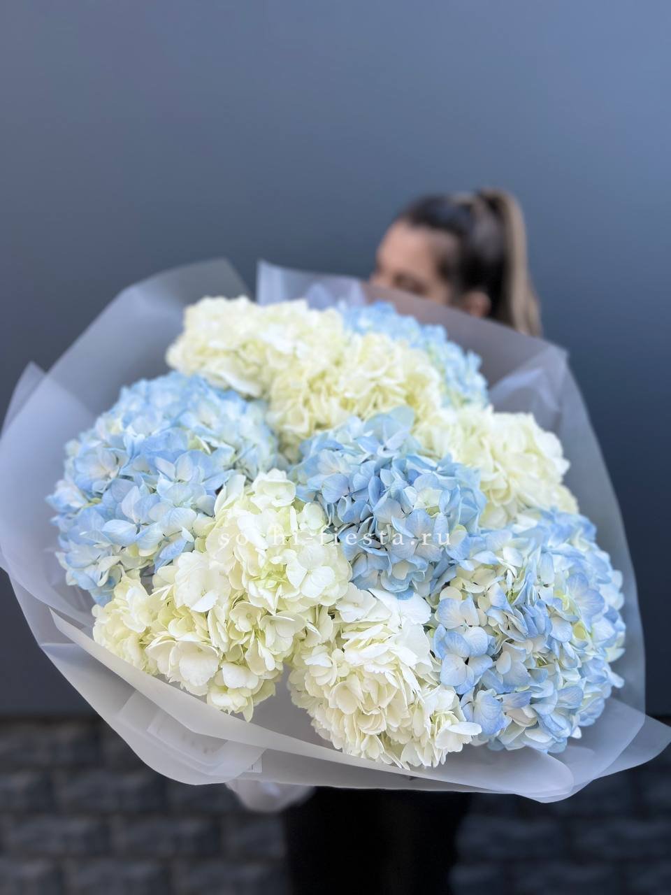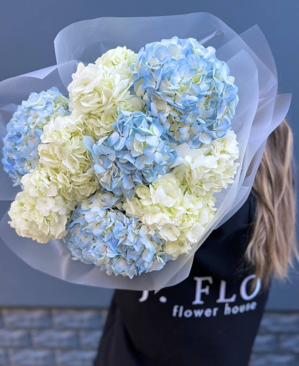 гортензия 15 шт., лента, дизайнерская упаковка.