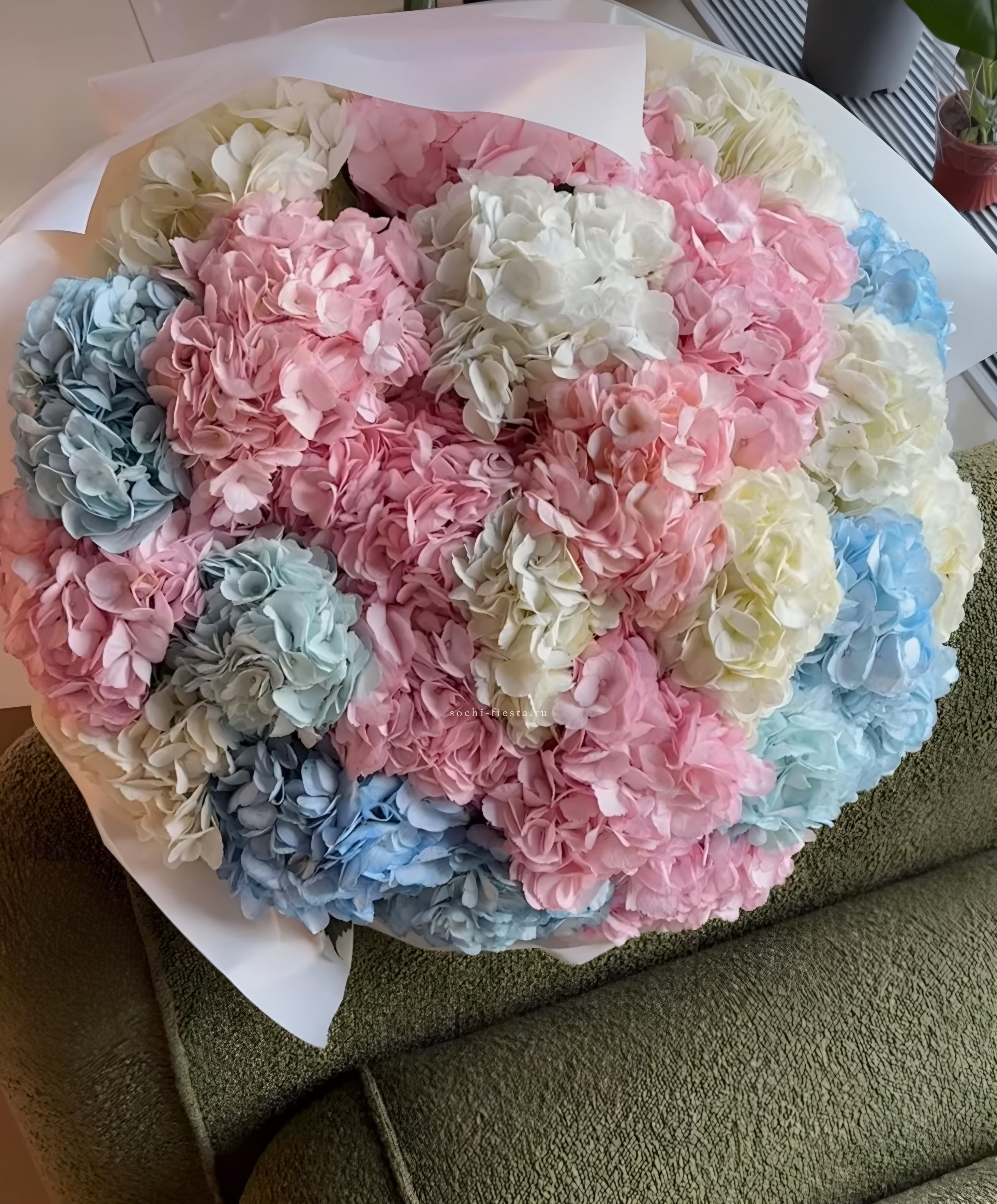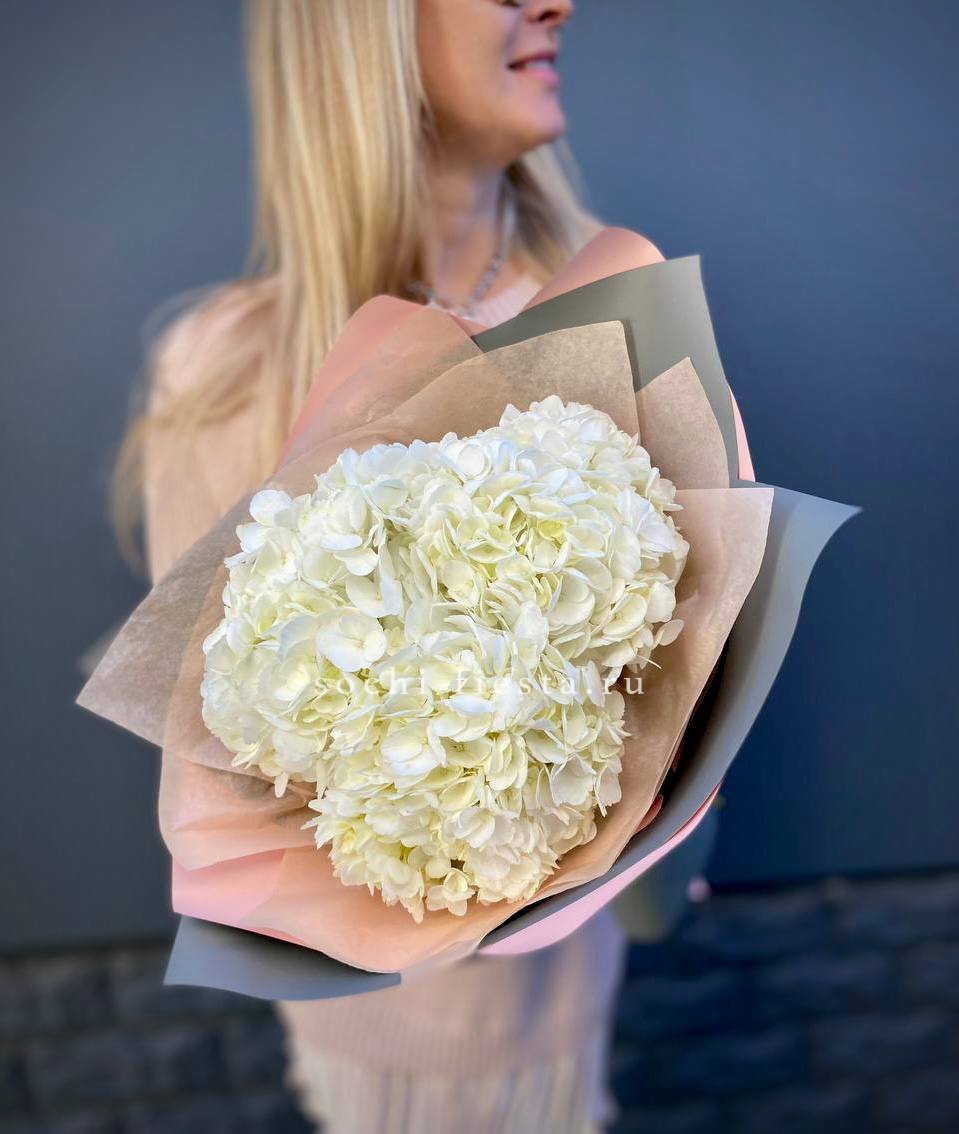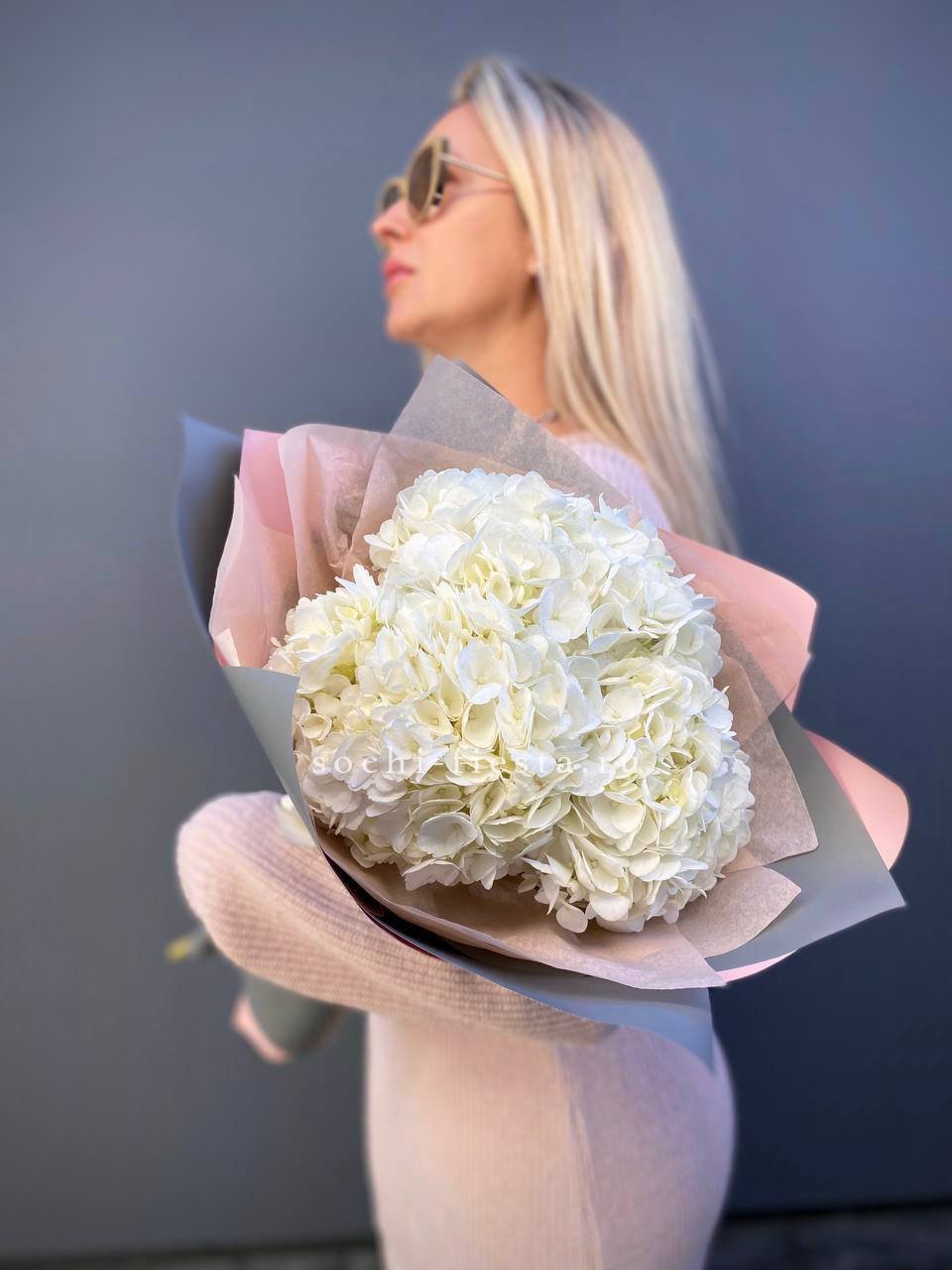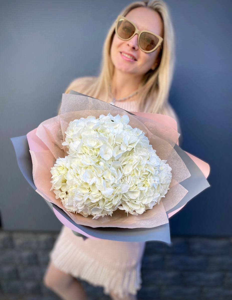 Для заказа товара "Букет из трёх белых гортензий" с доставкой в Нижнекамске нажмите в корзину
