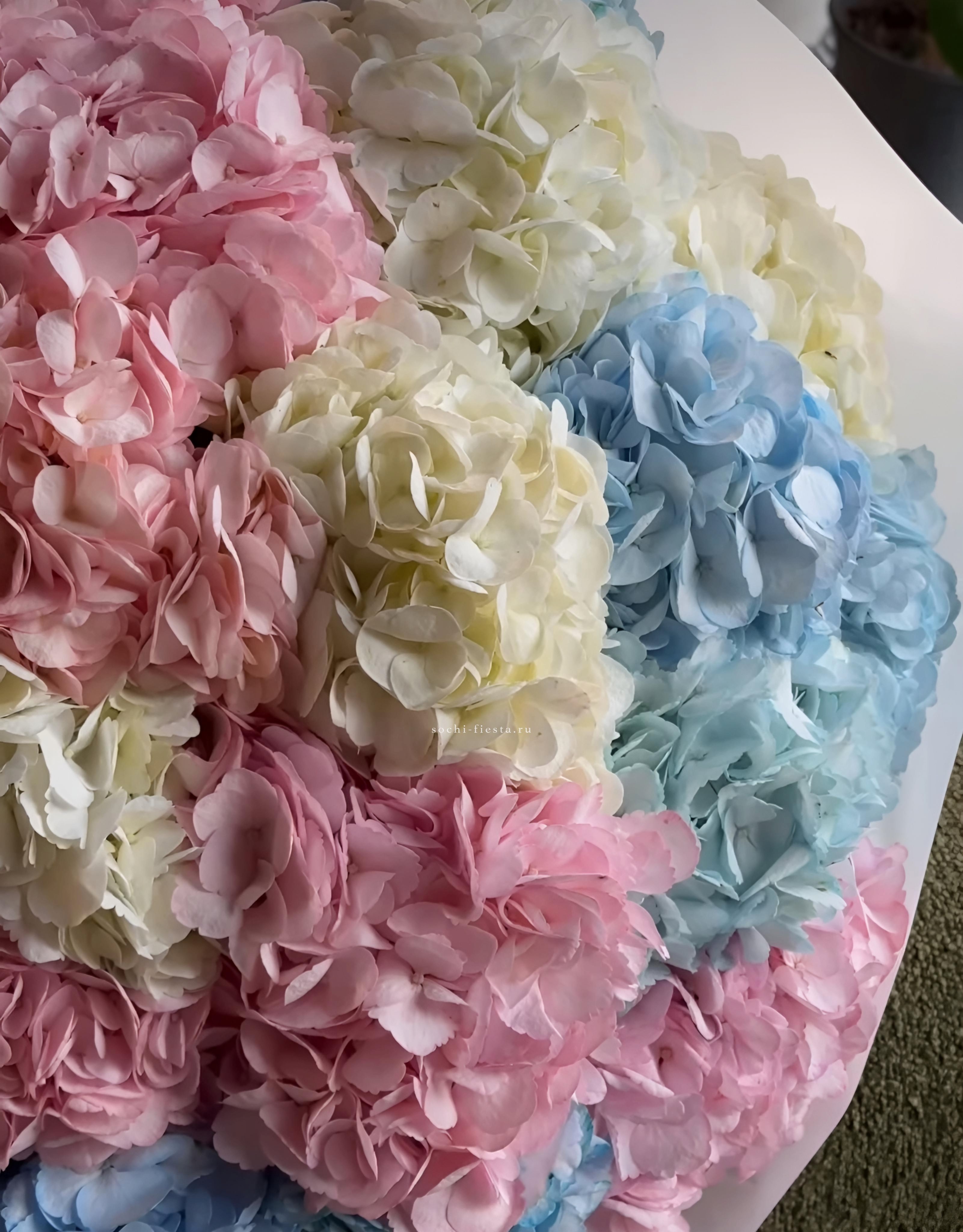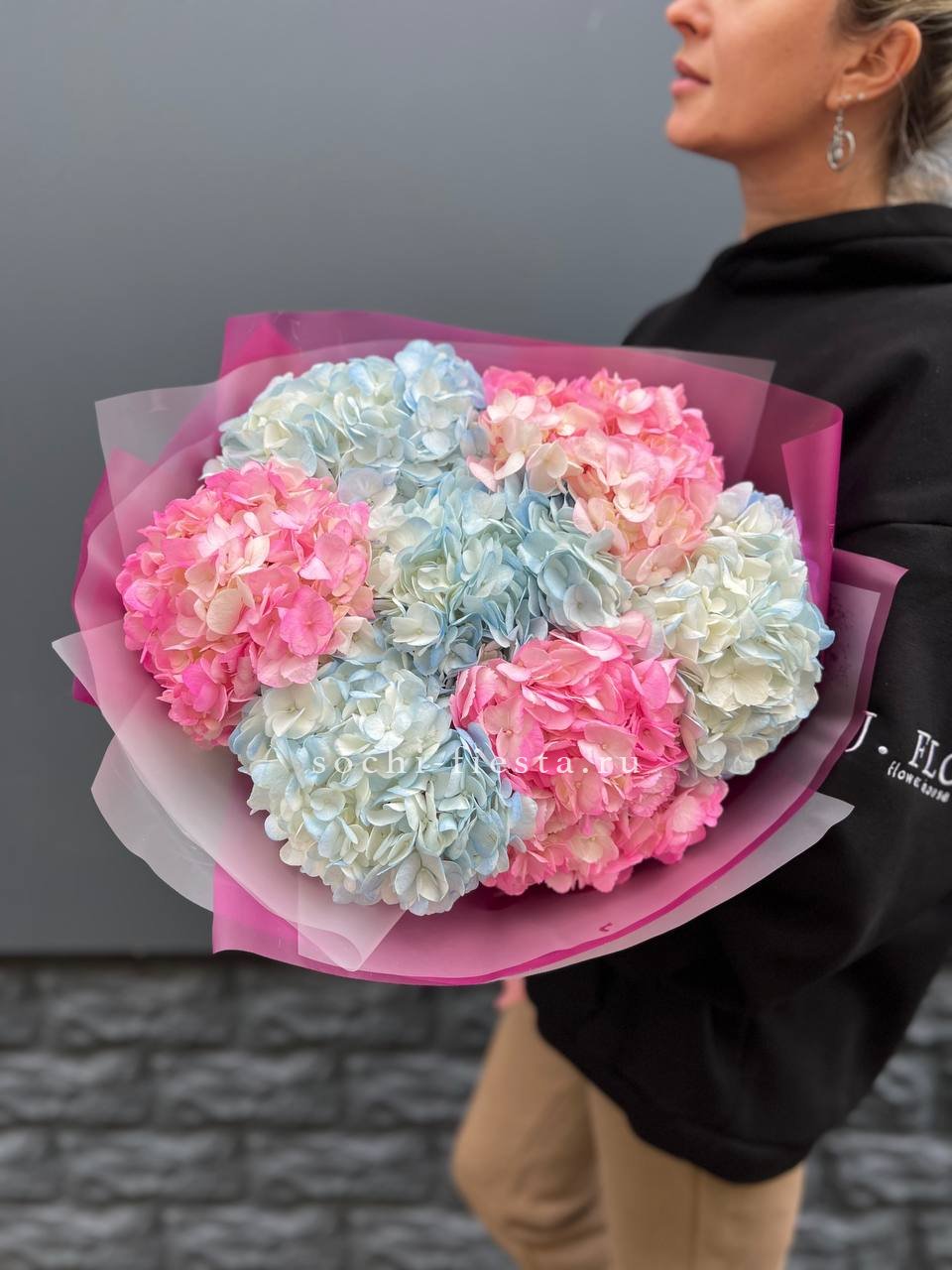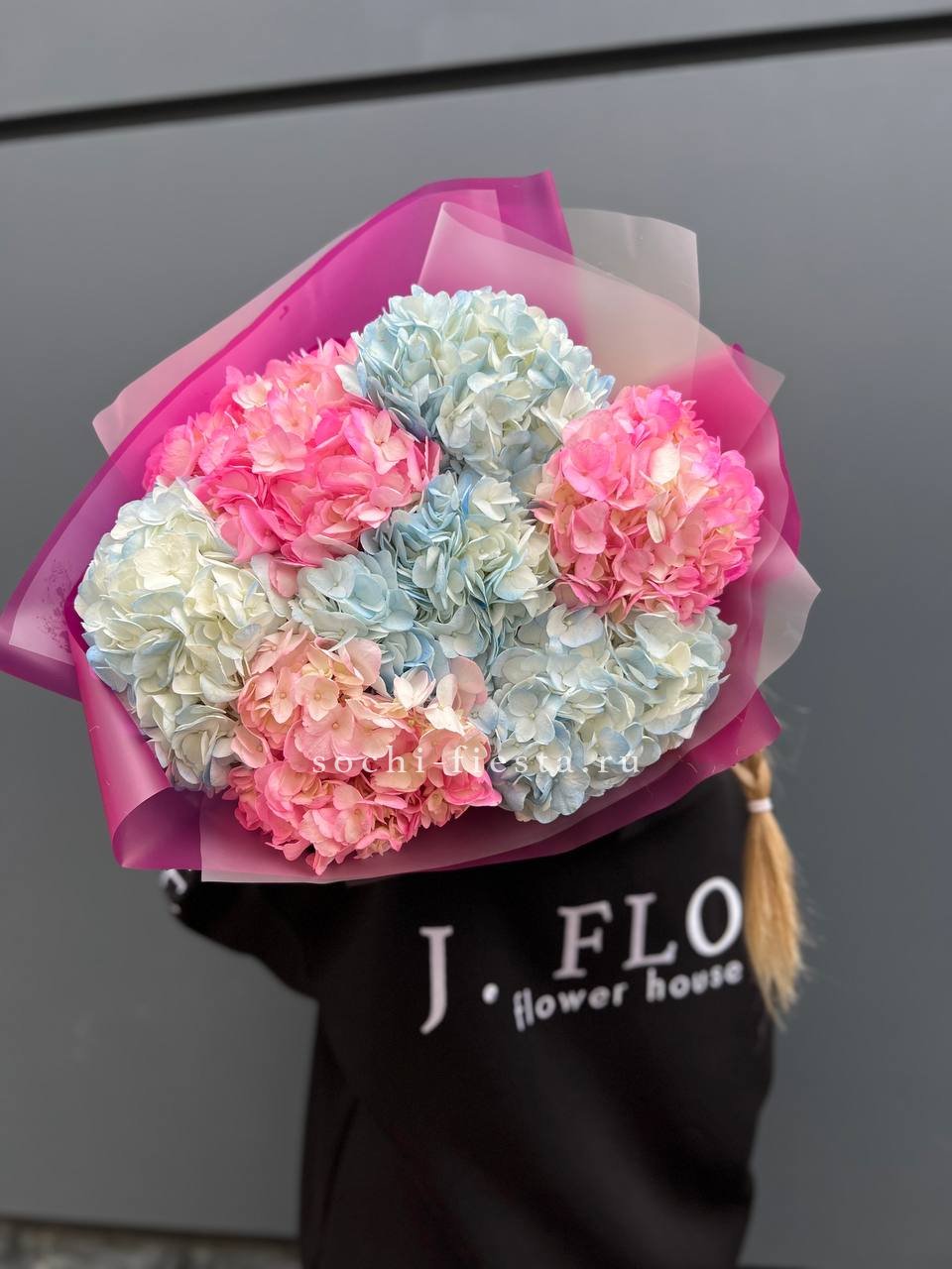 Для заказа товара "Букет из трёх белых гортензий" с доставкой в Нижнекамске нажмите в корзину