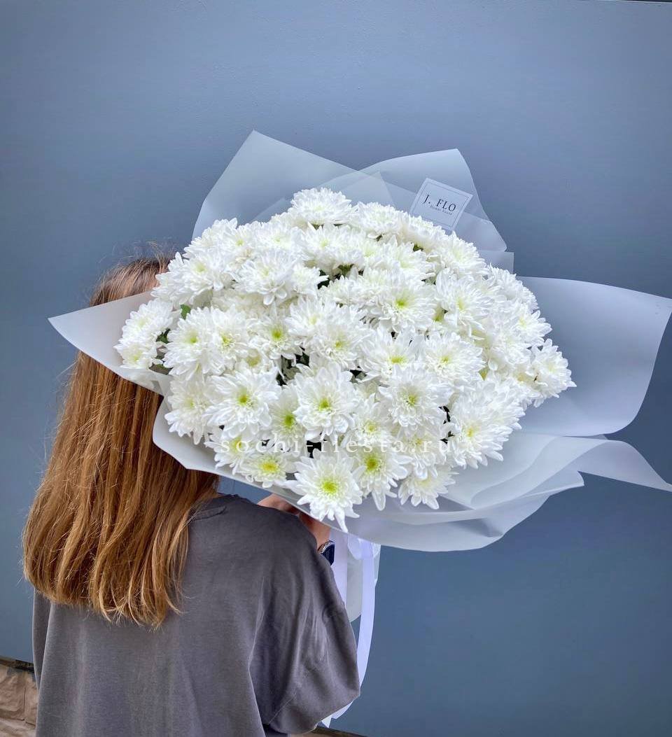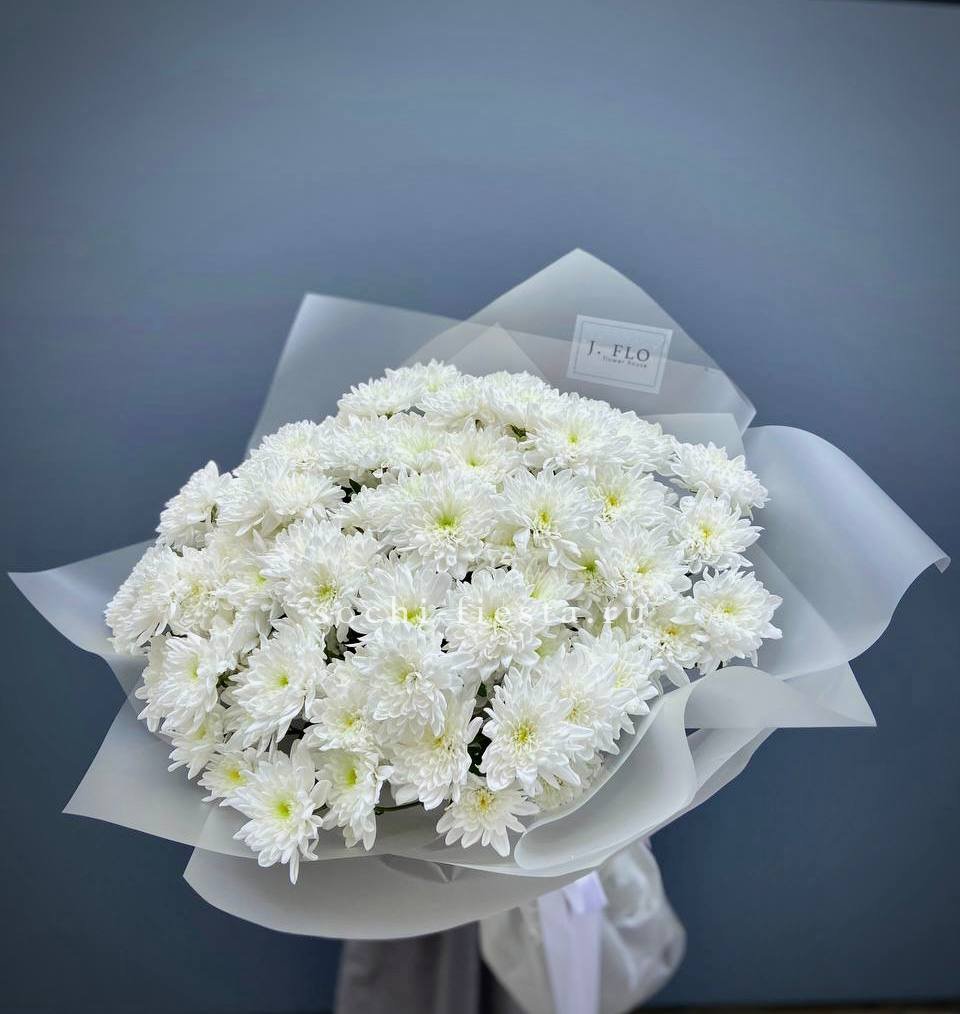 хризантема кустовая - 19 веток, лента, дизайнерская пленка.