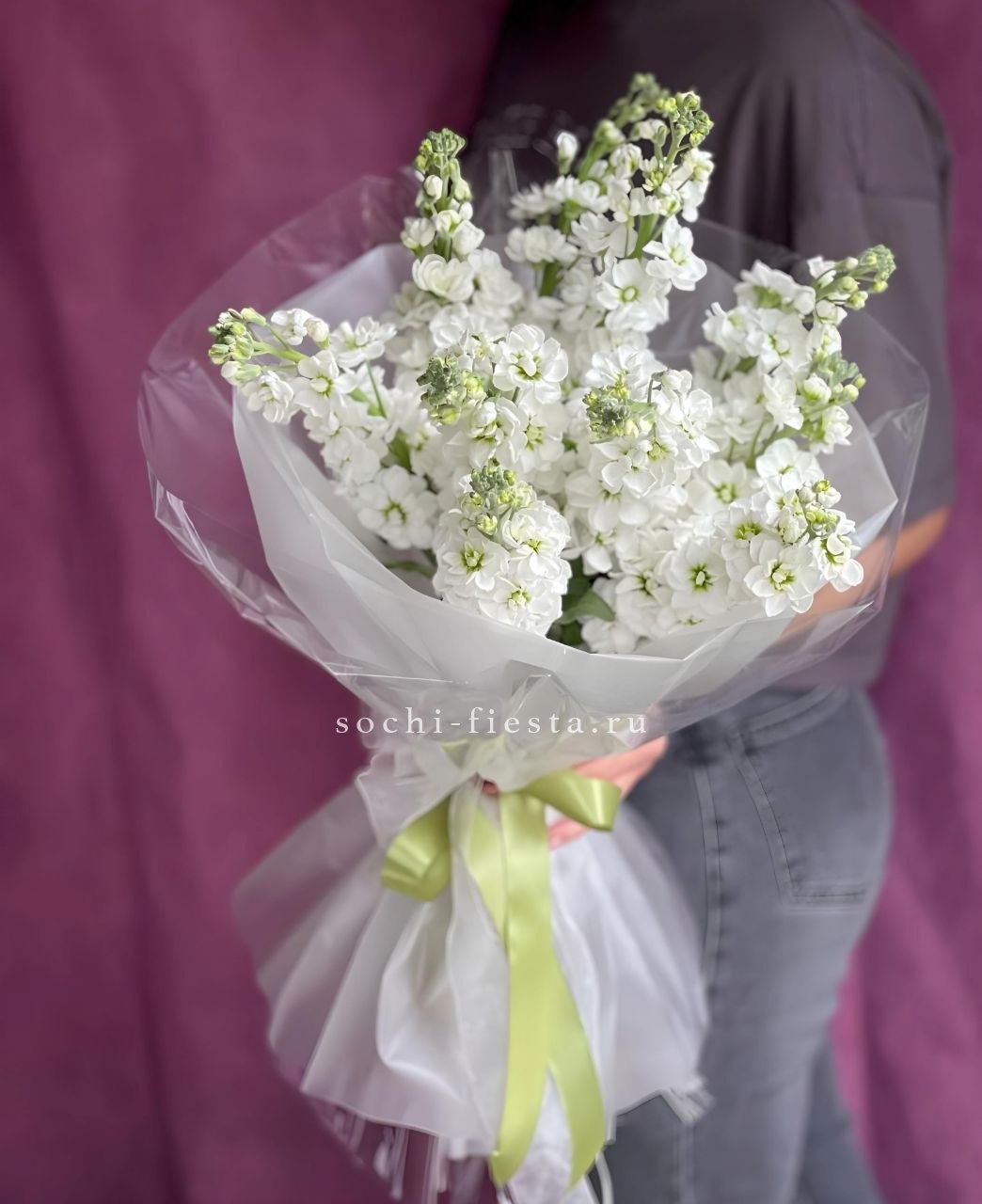 маттиола нежных тонов - 9 веток, лента, крафт или дизайнерская пленка.