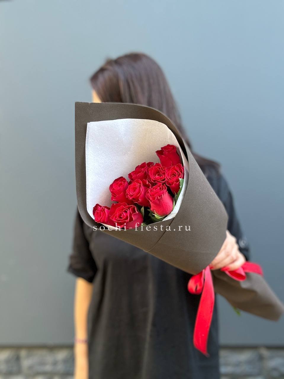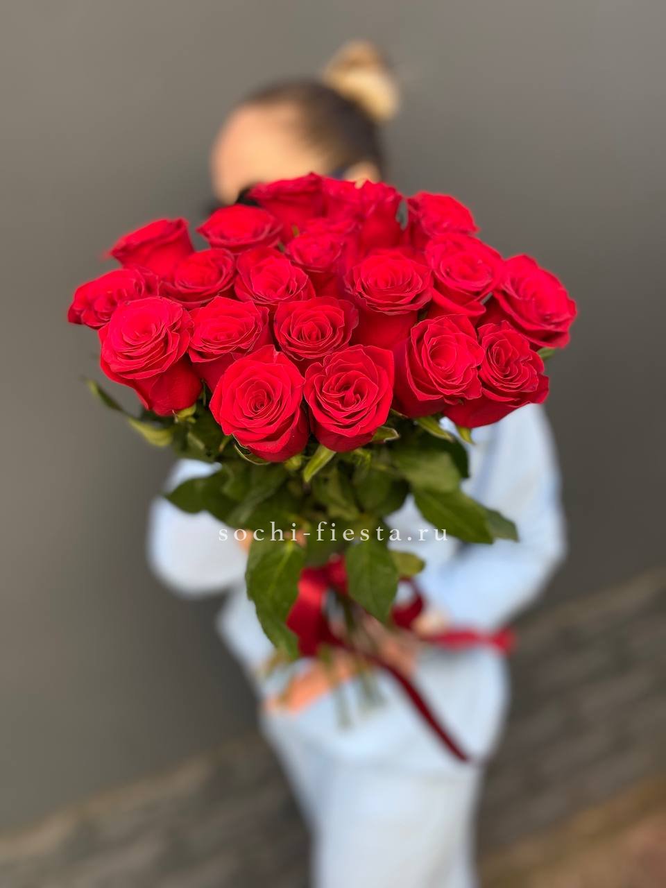 19 алых роз под ленту.