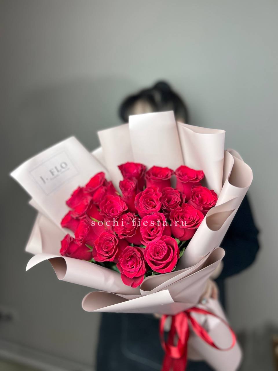 33 красных роз, лента, дизайнерская упаковка Вы можете выбрать желаемое количество цветов данном в букете.