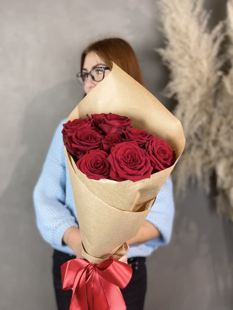 Семнадцать красных роз в обрамлении крафта или дизайнерской пленки — это лаконичная форма с выраженным характером. Букет удобен для вручения и долго радует свежестью.