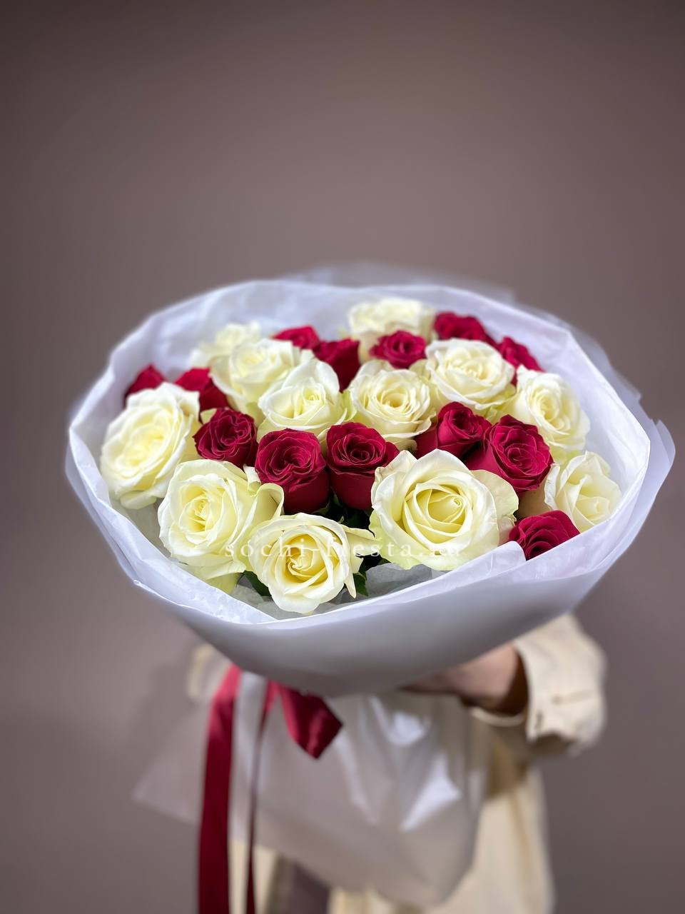 Для заказа товара "Букет их красных и белых 25 роз" с доставкой в Нижнекамске нажмите в корзину