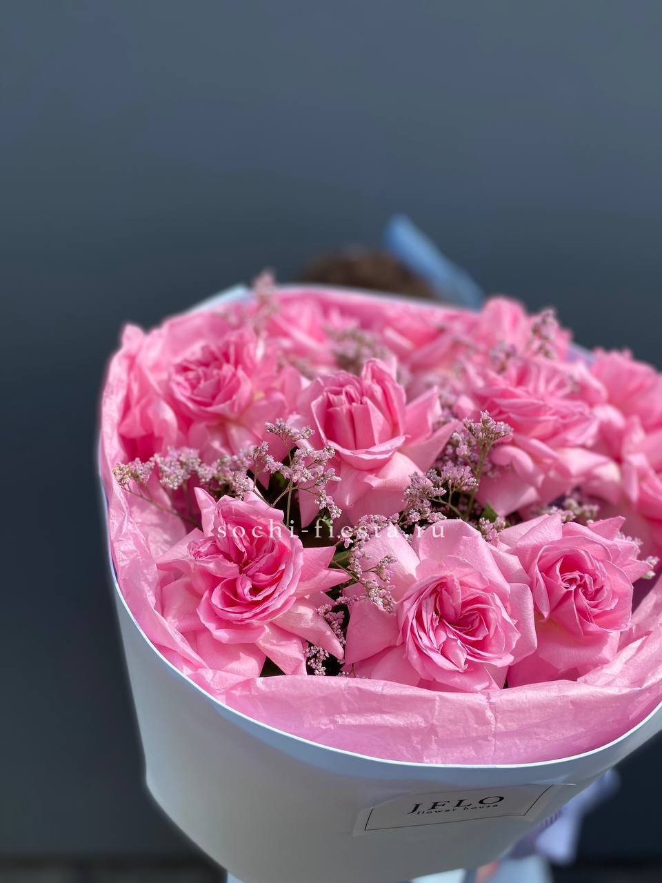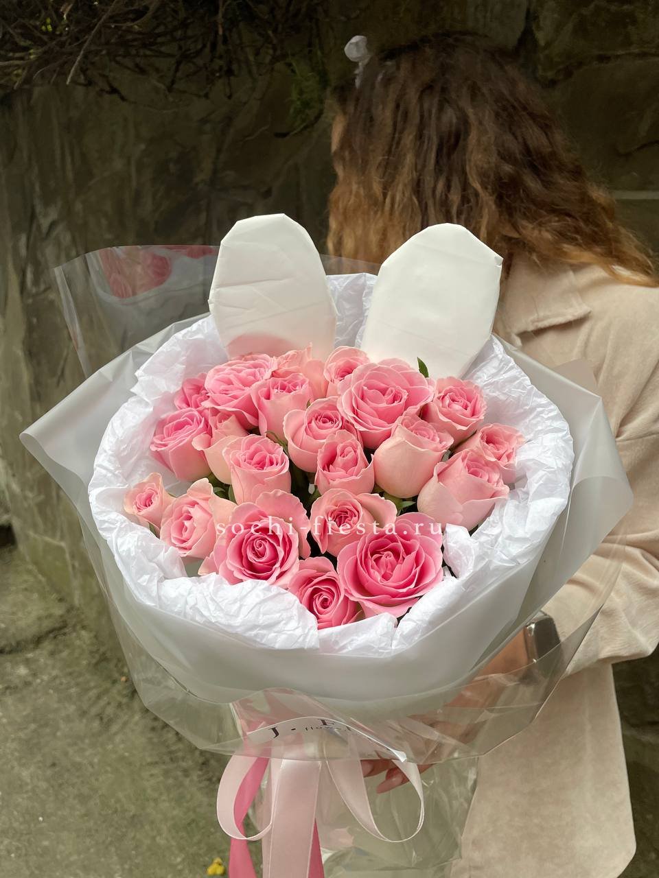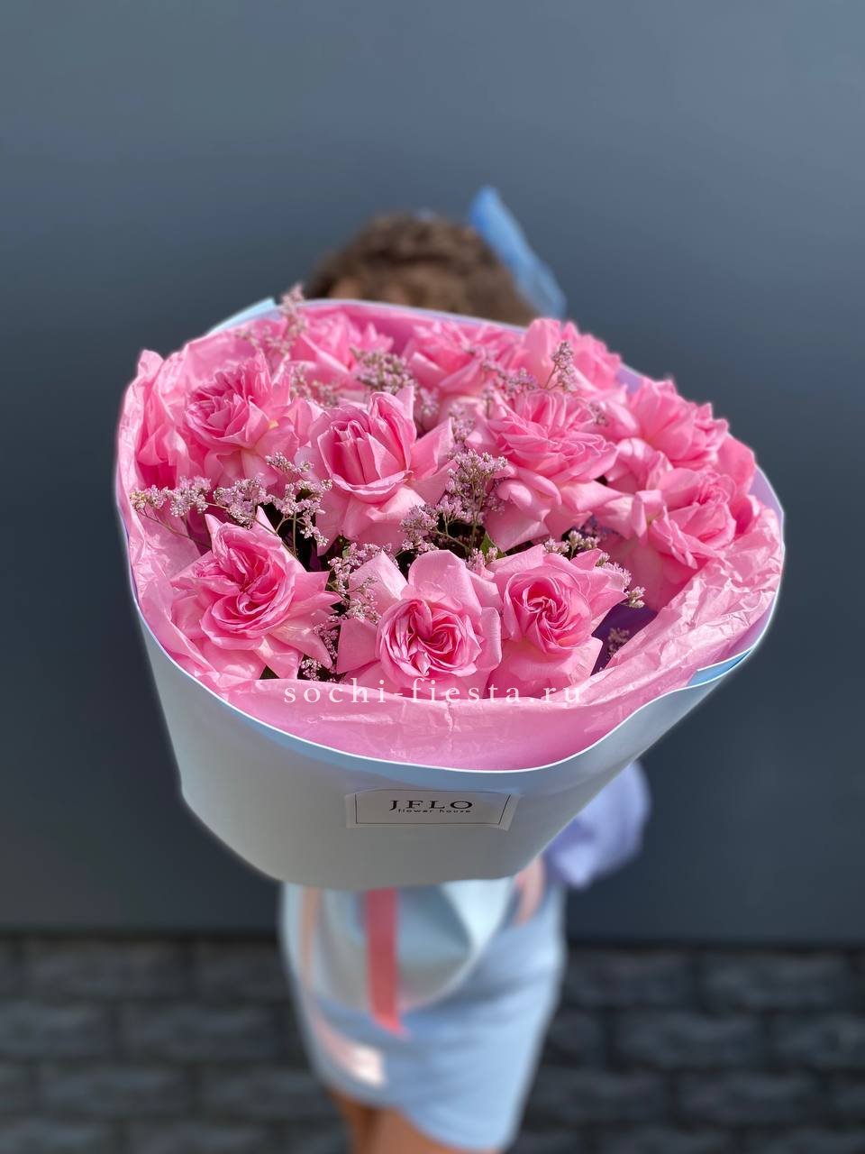 Для заказа товара "Розовые розы в авторском оформлении" с доставкой в Нижнекамске нажмите в корзину