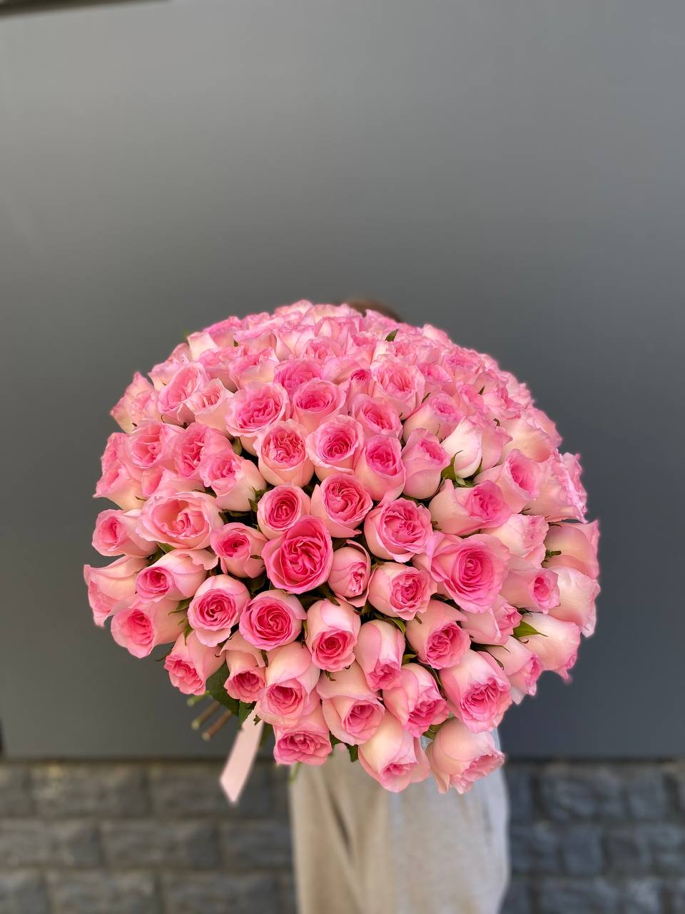розовые розы - количество на выбор, авторская упаковка, лента.