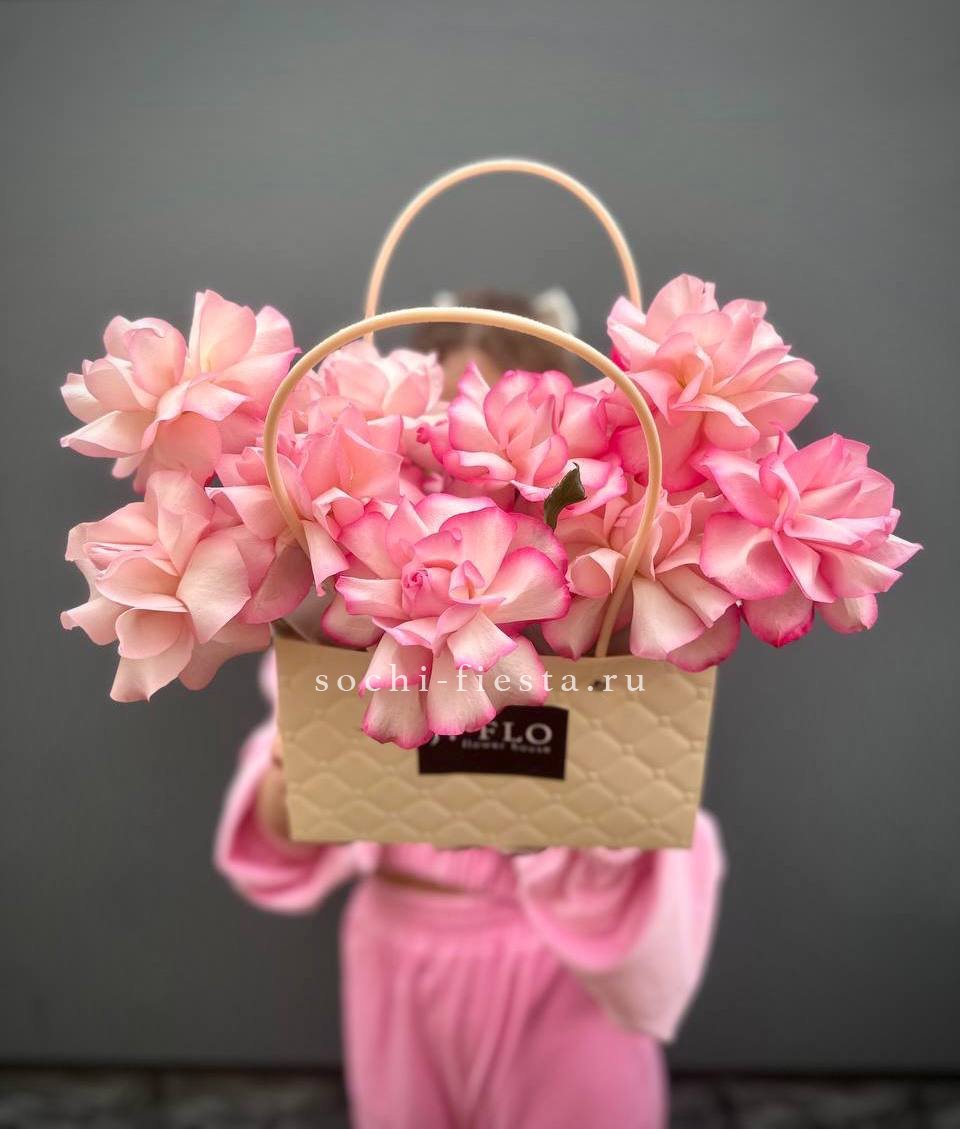 Вывернутые розы открывают всю глубину бутона и создают объёмную фактуру. Каждый лепесток развернут наружу, обнажая сердцевину. Розовый оттенок звучит свежо и современно.