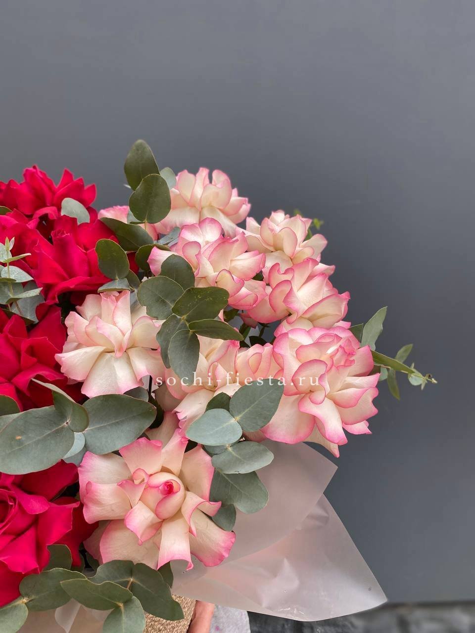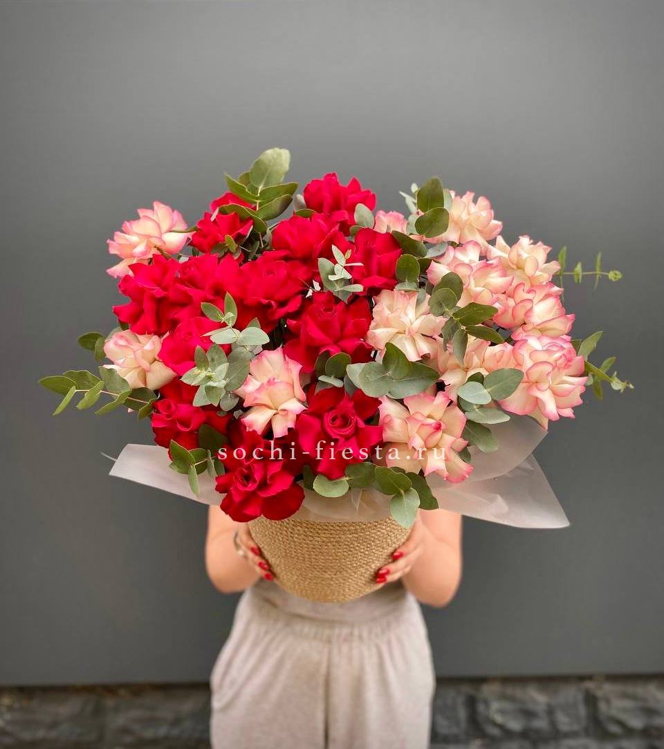 вывернутые розы, эвкалипт, лента, авторская упаковка.