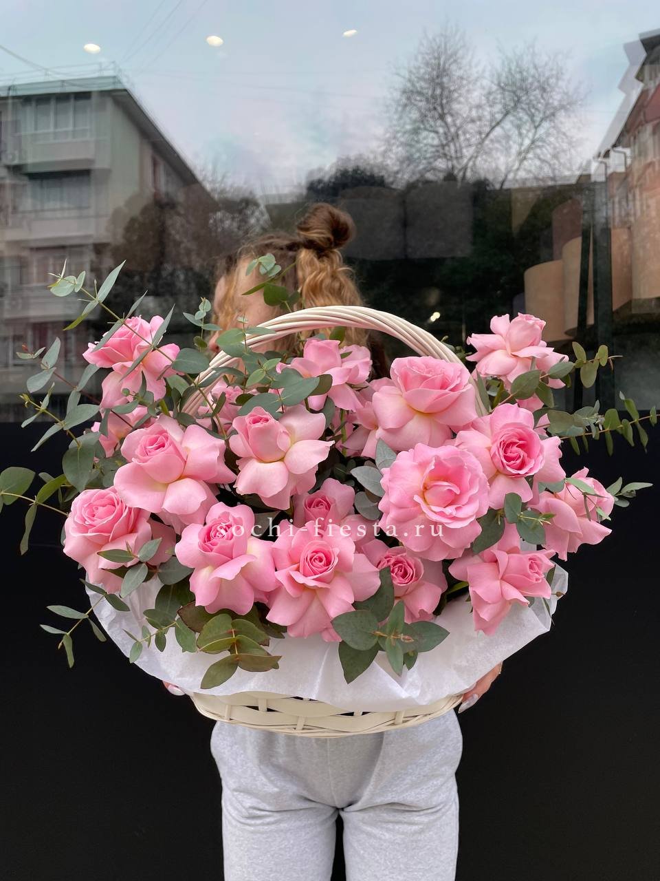 вывернутые розы - 19 шт., эвкалипт - 1шт., лента, авторская упаковка.