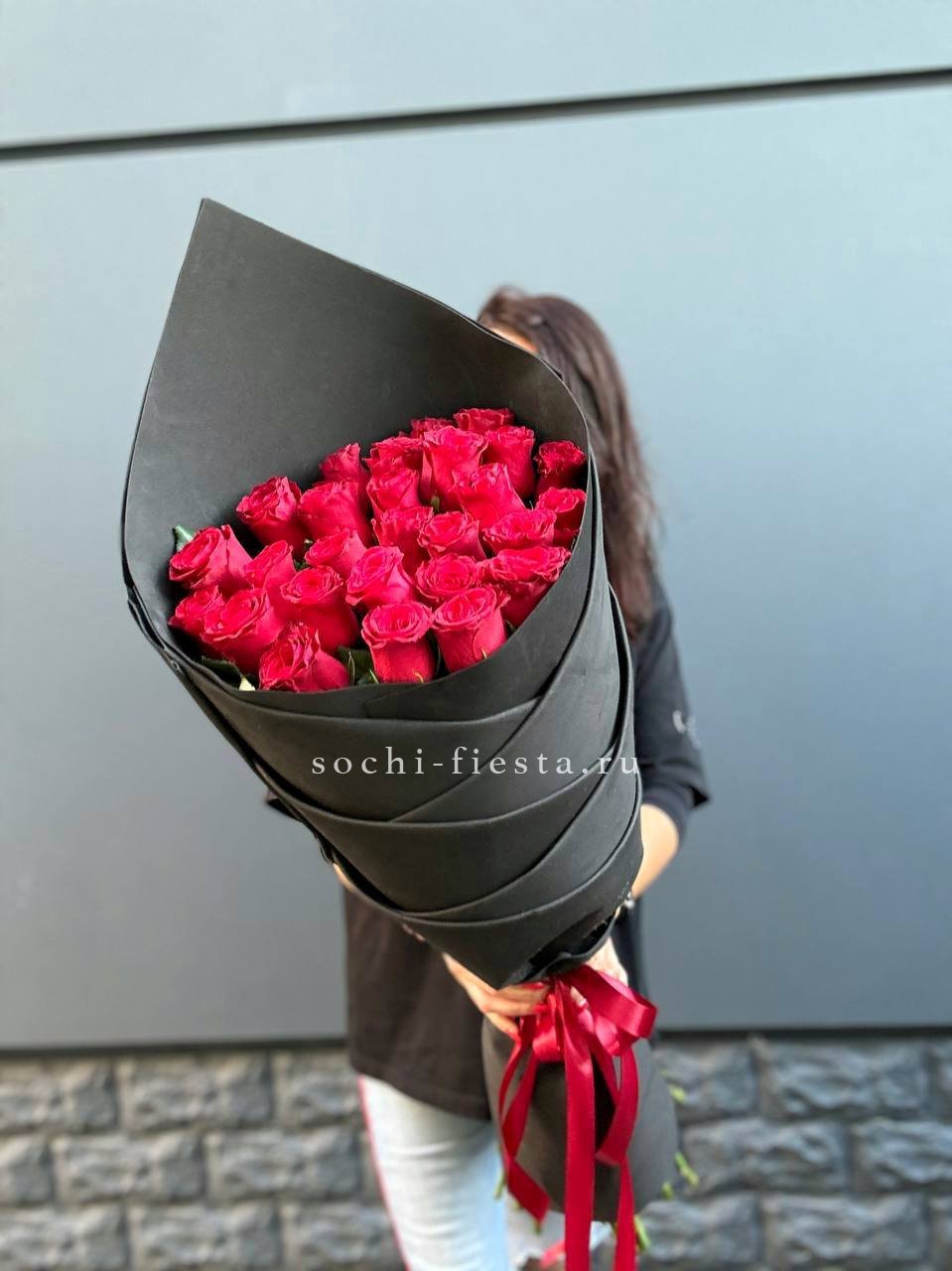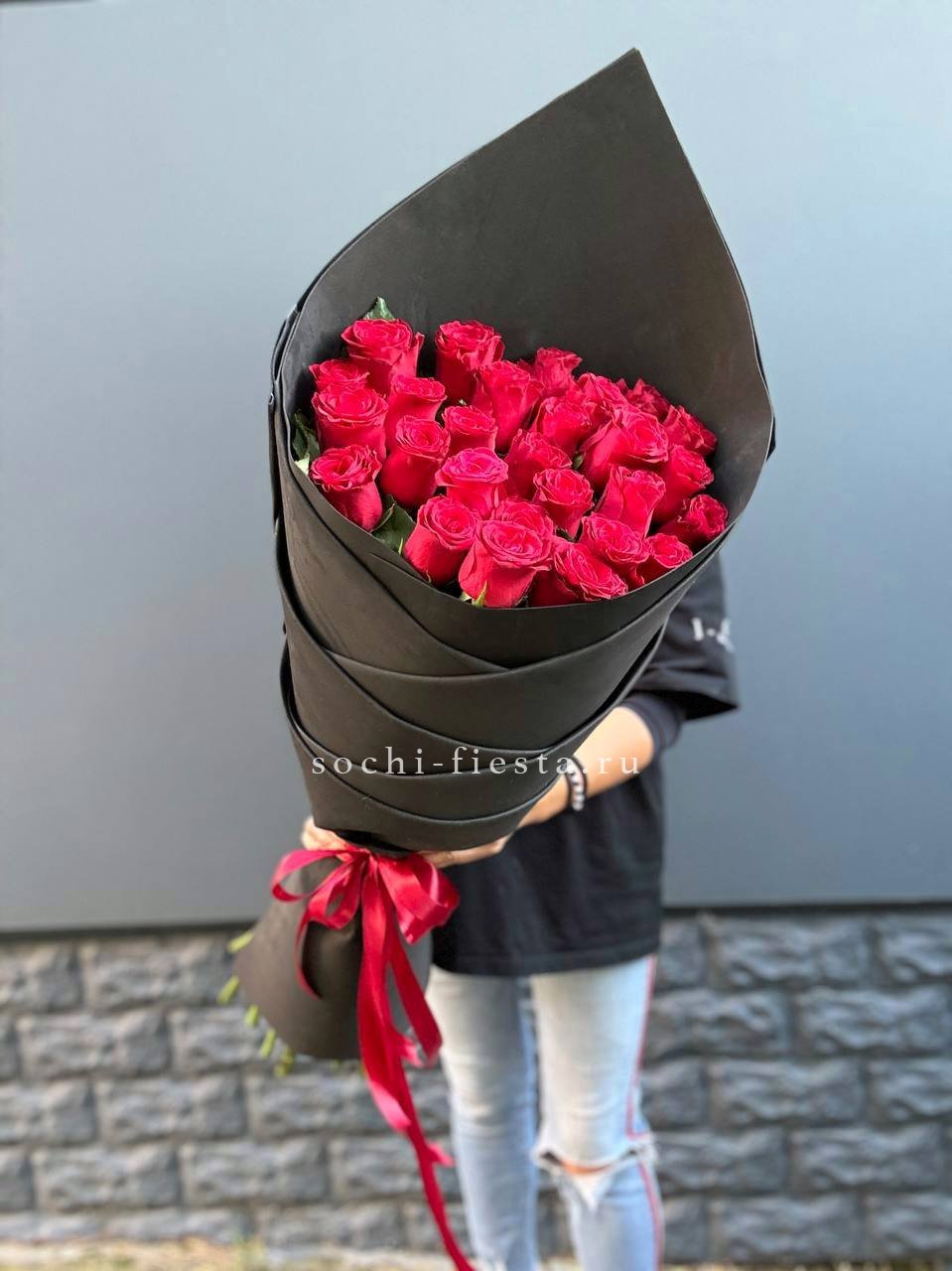 от 11 голландских роз, лента. На фото представлен букет из 51 шт.