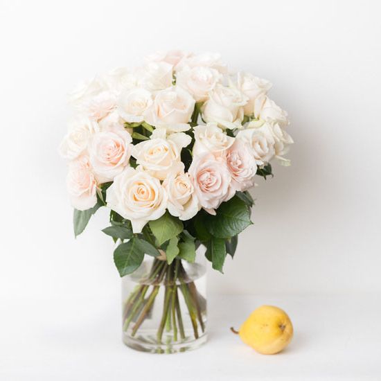 Двадцать пять бутонов кремового оттенка собраны в классический монобукет. Мягкая палитра и округлая форма создают спокойное впечатление без лишней декоративности.